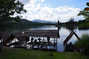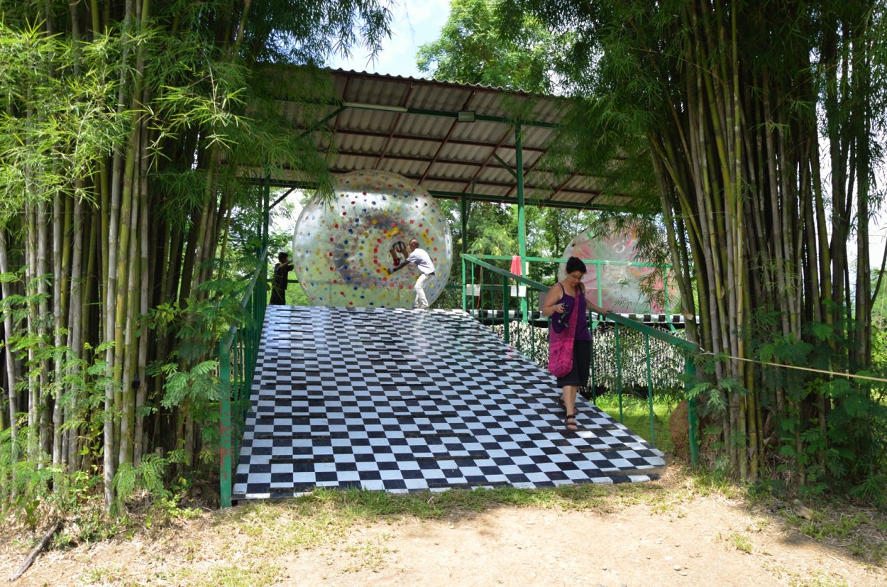 After a brief lunch stop we head off to our 2nd cave on the tour. Phung Chang Cave (Tham Phung Chung), is one of the highlights in the tour brochure and luckily the reality matches the sales pitch. There is a large foothill that basically blocks off a deep valley and the cave runs through the center of the foothill. A creek runs through the valley and millions of years of erosion has channeled the creek through the foothill creating the cave. The water running through the cave means that our exploration is a little different than the other caves we have been to. For the first several hundred feet we get into a sea kayak and a Thai guide paddles us in, then the cave narrows so we transfer to a bamboo raft and gudes then walk through shoulder high water pushing us on the raft for a few hundred more feet before we finally get off the raft and then wade our way deeper into the cave. The locals are trying to keep the cave as natural as possible so there is no external lighting inside the cave, our only source of lighting is LED headlamps that we are all wearing. Our exploration takes us about 1km (about 0.6miles) into the heart of the foothill and the channel through the cave becomes to difficult for tourists to go much deeper. Our guide has us turn all off our headlamps and we get a feel for true 100% darkness and we spend a couple of minutes just appreciating the solitude and the gurgle of the water running through the cave. Then it is time to move on so all the lamps get turned back on and we turn around and make the whole trek in reverse back to the entrance.