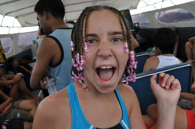 4 hours later we arrive at Surat Thani we are ushered into a little ‘store’ that is more like a stall in a market and told that we will wait here for the bus to Donsak – it will be there in an hour. So we settle in to wait, but the shop is hot (not air-conditioned), and the chairs are not all that comfortable so it looks like it will be a long hour. As it turns out it is not an hour at all, but basically an opportunity for them to sell you more package tours, day trips, return trip, etc. Once everyone has been through the grinder, the bus magically appears (about 30mins) and we climb aboard. Now this is a real bus, like a touring bus, and it will take us the next 1 hour leg of the trip to the ferry. The bus is air-conditioned, but not all of it is working properly, and as Mrs. Columbus learns seating location is everything because her air conditioning does not work and the bus starts to get a little stuffy. The kind operator does come back about 3/4 of the way through the trip and realize how warm it is and turns her A/C on for the last few mins of the trip.