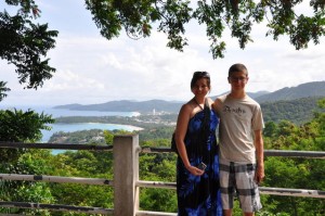 The journey from Phuket to Koh Samui involves traveling by road from Karon Beach to Donsak where there is a harbor with ferry service that takes you to Koh Samui where presumably you get a taxi to take you to your hotel. Seems simple right… Well the driver shows up to our hotel at 7:40am to pick us up (we are the first pickup) and manages to load all our stuff into his van – this is a feat unto itself as we have a total of nine bags, but he manages to jam them into a space that looks like it will barely fit 4. So off we go to pick up the rest, stopping at another Karon hotel to pick up 2 more people, and then to Kata to fill the last 4 seats. All of these people have had their bags jammed into various nooks and crannies and the van is so full that one of the last people has to ride up front with the driver.