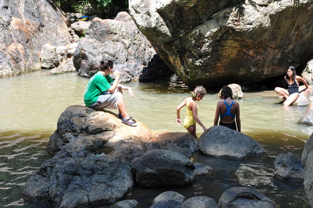 So 8am rolls around and we climb into the van to go to the ferry where uneventfully we transfer our baggage to the bus and board the ferry. After the crossing we travel the hour or so to Surat Thani and get dropped off at a restaurant/transfer station and are told it will be about a 20 minute wait for the bus that is going to Krabi. After a short wait we are herded off to a tuk-tuk to go to where the other bus is waiting. Here is where the adventure goes a bit sideways….. The bus we board seems relatively new, and air-conditioned and we load our bags and settle into some seats, and then we wait, and wait, and wait. All the while more and more people are getting on the bus and after about an hour and 20 minutes the bus is full and finally departs. Much to our surprise though the bus stops frequently on the way out of town to pick up even more people, and soon the bus is completely full – including people standing in the aisle and anywhere there is a spot. It turns out that this is a local bus that is going to Krabi, but not via an express route, and going through a bunch of samll towns along the way vs going along the freeway. So instead of the short 2 hour ride were were expecting we hunker down for a much longer time – the one saving grace is that we all have seats vs the people standing.