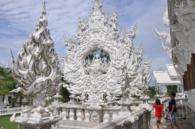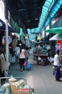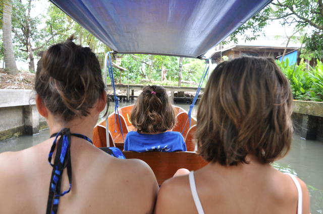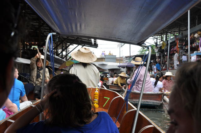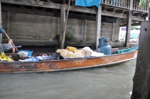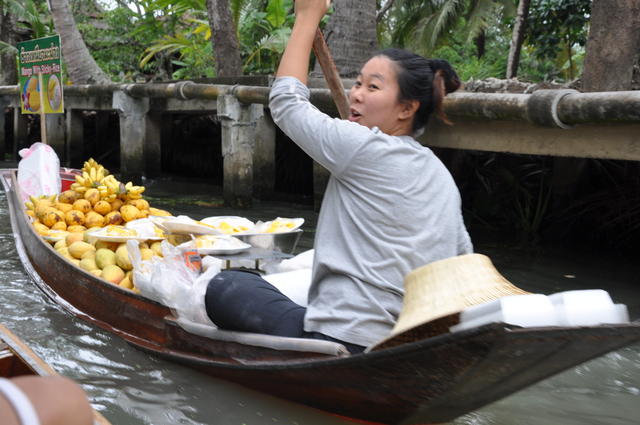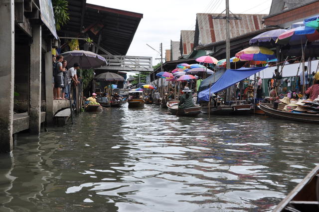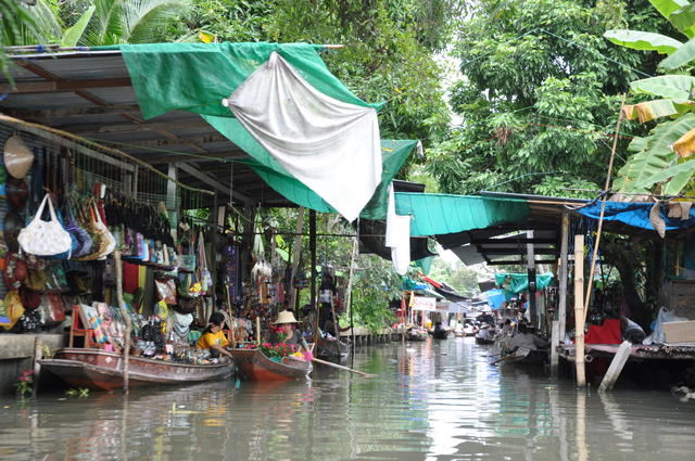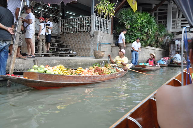 There are times when there are so many boats jammed in side by side that it seems like no-one is going to be able to move, but somehow the Thai boat drivers seem to be able to bang their way around each other and push on ahead. The klongs seem to go everywhere, and as you pass by a maze of endless passages seems to evolve, but the driver seems to know exactly where he is going and before long we are back at the pier where we started. A short break to have a drink and some mango with sticky rice that we bought from a boat vendor and we are back on our way.