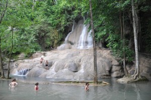 The train is definately worth the $3 USD ticket price (Tha Kilen to Nam Tok) and after some lunch in Nam Tok we stop to see a spectacular waterfall that is at the end of the line – the actual original Thai-Burma rail line would have gone right past the falls, but there is now a park here and people can swim in the pools that are formed at the bottom of the falls.