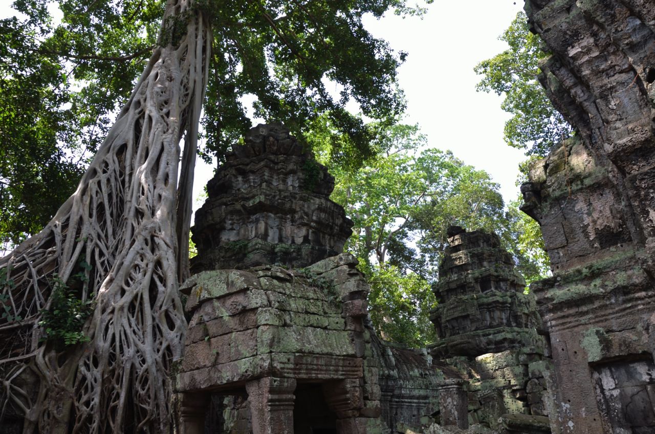 Our first day includes the sites: Prasat Kravan, Banteay Kdei, Ta Prohm, the city of Angkor Thom, and then Angkor Wat. Ta Prohm is a temple that many people may recognize scenes from as it was used as a location for the Tomb Raider movie. As was the case with all the temples in this area, they were abandoned around the 14th century and the jungle has now had several hundred years to dominate the land, the result is that up until the early 1900s the sites were completely overgrown with vegetation. There is restoration work being undertaken at most of the temples, but for some like Ta Prohm they are quite concerned about removing the trees because in some places the gigantic tree roots are all that continue to hold the structures up so there is some forced co-existence with man and nature.