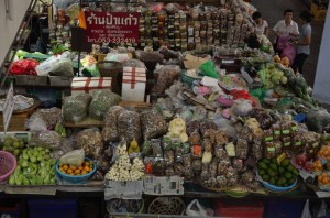 A very patient Neing takes us to a few more markets to find one last elusive item, and then we stop to pick up our laundry and it is back to Ginny Cafe for our last dinner in Chiang Mai before we head off to the airport. Neing graciously agrees to wait around while we have dinner to give us a ride to the airport, and Tee and her staff set us up with yet another tasty meal. We say our goodbyes to our new friends Tee, Captain Bob and Neing as we did the day before with Riam and Sopa and head off to catch our flight. We will miss Chiang Mai and the wonderful people we have met here.