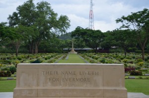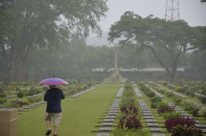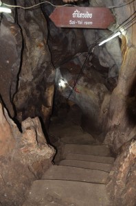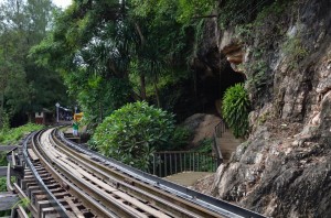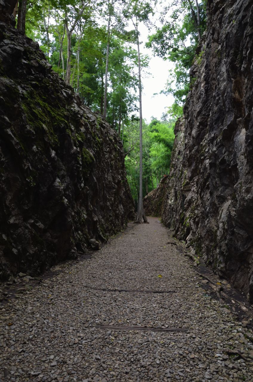 Our first stop takes us a little farther down the road to the Hellfire Pass historical site. The Hellfire Pass is a ‘cut’ through the rocks where the original railroad line to Burma ran through. During the war the Japanese were in a hurry to complete the rail line so that they could move war supplies into Burma and increase the pressure on the British colonies in Burma and India. After conscripting tens of thousands of POWs and and tens of thousands more local laborers the progress was still not going fast enough so they started working the crews 24 hours per day – the cut got it’s name because at night the light of the torches reflecting in the cut made the men feel like the were working in hell.
