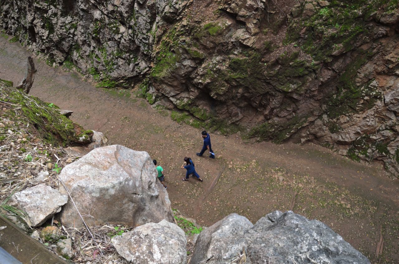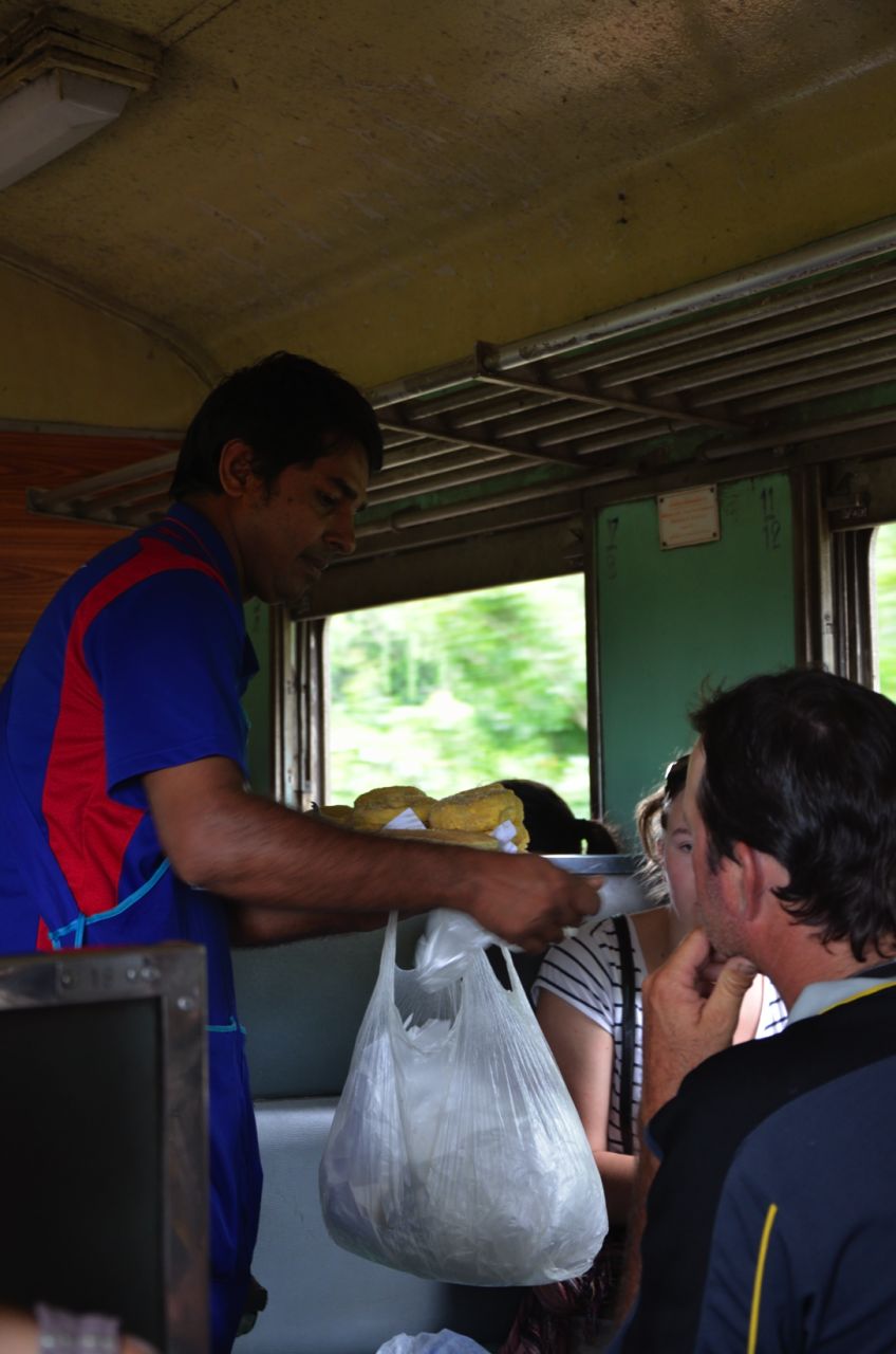 Although slower than traveling by car, the train ride is very scenic and in places follows the path of the river – in some places so close that the track is laid on trestles that hug the cliffside on one side of the train and drop straight down to the river on the other. The train ride is great and nowhere but here have I seen vendors get on and off the train at each station and and walk up and down the train selling hot food, drinks and souvenirs. One vendor in particular has a try of doughnuts that look awfully tasty, and so we buy a couple to try – they are soooo good that we anxiously await his next pass of our car to buy some more, but sadly he is sold out by now 🙁 The good news though is that at the next station someone has brought him another fresh tray, so we promptly gobble down 4 more 🙂