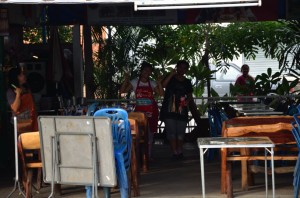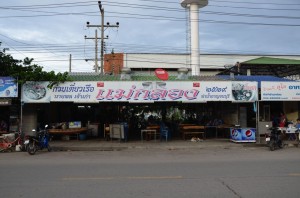 The songtheaw driver we have is great and we ask him if he will take us farther into town for dinner. We make a quick stop back at our hotel to get some instructions about a place we want to go to for dinner. Bee, one of the ladies at our favorite Thai restaurant back home is originally from this area, and she told me about a place to go for a special noodle soup that is very well know among the locals. We have the name of the place written in Thai and show it to our driver who smiles and says “yes, noodle!” and off we go. We are happy we had the name of the place written for us as there is no way we would have found this place on our own 🙂 and it clearly caters to locals. There is no menu, they make soup period – but it is fantastic! Full of rich flavor and different from any other soup we have had in Thailand – hopefully I can try and find a recipe or something to try and make this at home, but I suspect it will not be nearly as good.