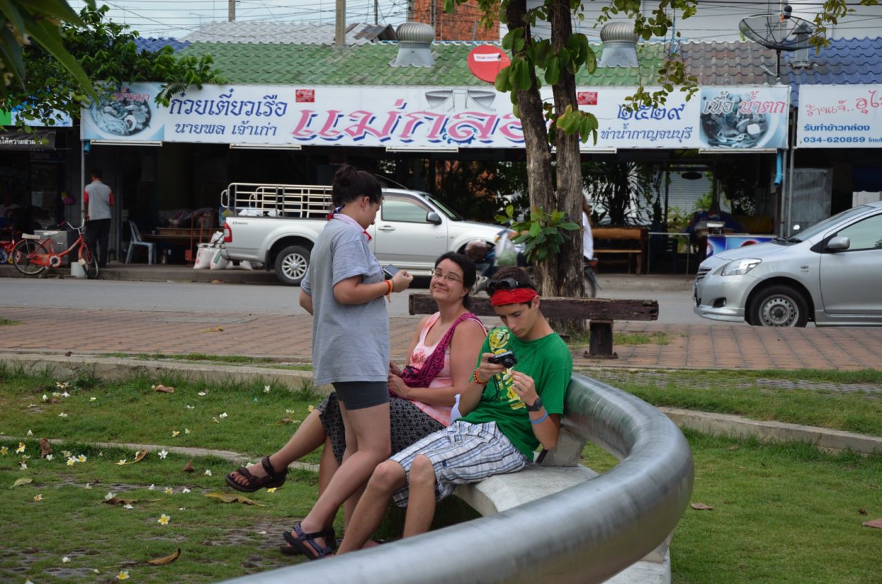 The very friendly and helpful staff at out hotel have arranged for a songtheaw driver to meet us at the end of the train ride and take us to a few attractions we have on our list. The train is late getting in to the station, but our driver is there patiently waiting for us to arrive!