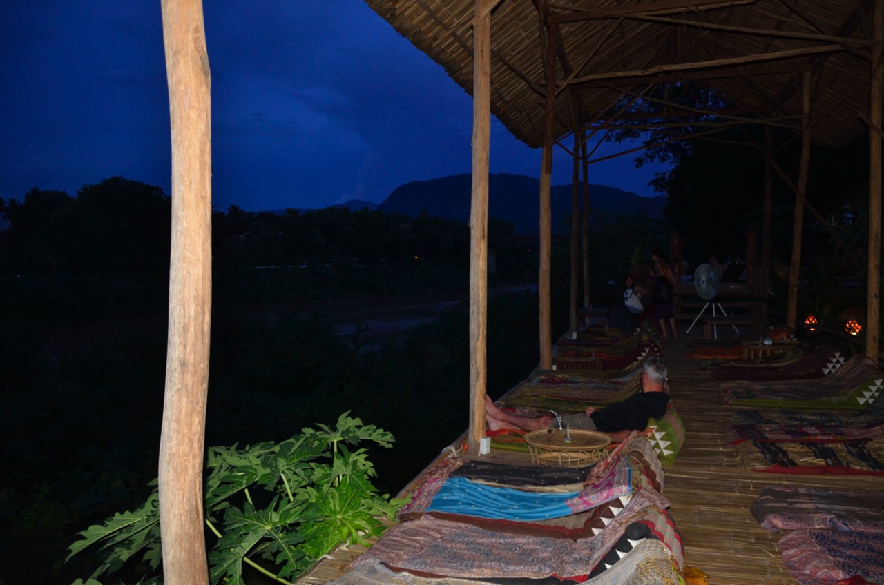 By the time we get to the top we are huffing and puffing, dripping again with sweat and cursing some of the Laos locals who seem to make a sport out of running – that’s right running – up the steps in the evening!! The view from the top however is quite spectacular and ultimately worth the effort. I am happy that the skies co-operated and we got a decent sunset because it is quite unlikely that I would have climbed the steps again. The way down is much easier than the descent from the waterfall earlier in the day, but because stairs in many of these places are not built to any ruleset on spacing, it is still a bit of exercise even to go down.