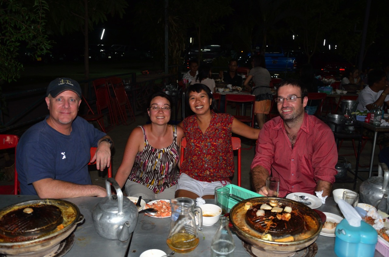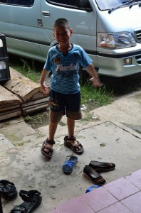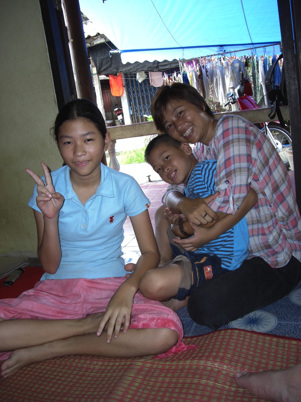 After wandering around the area a bit and learning about how some of the land is being bought and sold for development of nice houses or resorts, we load back into the van for the short trip to Riam’s home. As we arrive cold drinks quickly materialize, and Riam’s children come out to greet us. They live with her husband’s parents and in I think fairly typical Thai fashion this is the same house where he grew up as a child. The parents do not speak any english, but greet us warmly and Riam is able to translate things back and forth for us, so we quickly feel very welcome in their home.