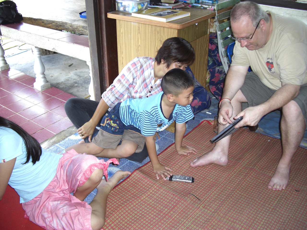 I have brought along my iPad with some of our photos from last year, a few pics of the kids and a handful of photos from back home. In hindsight I wish I had put some more photos from home on as I’m sure looking at a bunch of photos of Thailand is not quite as interesting to people from Thailand. We have a good laugh as Riam struggles a bit with the iPad, but her kids quickly jump in and show her how to use it 🙂 They are mostly interested in pictures of the beach – it is something we take for granted having been there several times, but for locals to travel from the north to south is a long and expensive trip and many wil never see it. They are also impressed with a couple of pictures of our yard from when we had snow – they of course never get snow here, so it is something they have only heard about and they have a good laugh at our fountain covered in snow and ice.