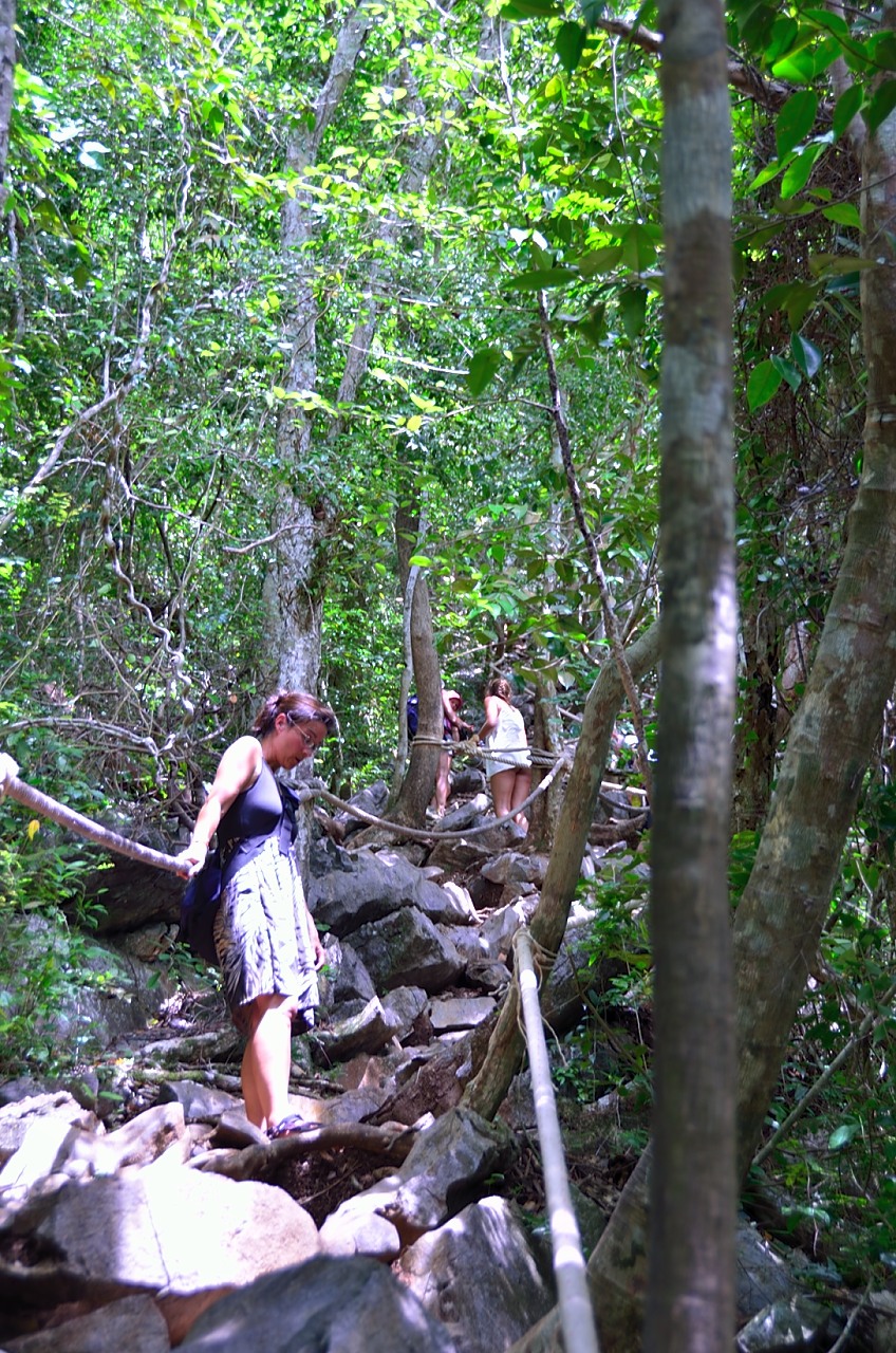 Often with these climbs the going down can be tricker than the going up. While not as physically demanding, the downhill momentum coupled with sometimes slippery rocks, and finding the right footholds means you need to pay attention. Given the rough terrain I am certain there have been many twisted ankles, cuts and other bruises by people making the descent, and as I am making my way down I wonder how exactly they get people out of here if they get hurt. There is no sort of helicopter rescue team or anything out here, so I can only imagine that some agile Thai people would have to carry you out. Thankfully that is not any of us and I make it down to the bottom with enough time for a quick, refreshing dip in the ocean to cool off before it is time to get back on the boat.
