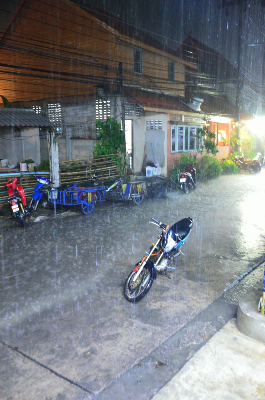 Just after dinner last night we were heading out to walk around and we had our first real rain so far. The sky opened up and it rained – hard rain – the road we were walking on goes down hill towards the beach and in a matter of minutes it went from perfectly dry to 2 inches of fast moving water. Luckily we were just steps away from a covered doorway to hop into just as it started. The rain lasted for about 15 minutes, and over the next hour or so there were a couple more outbursts like that and then it was mostly over. It rained some more during the night, but we were long asleep by then.