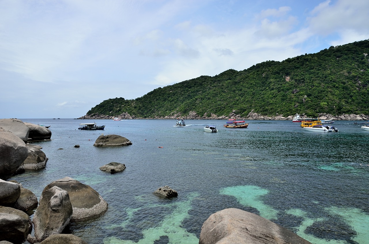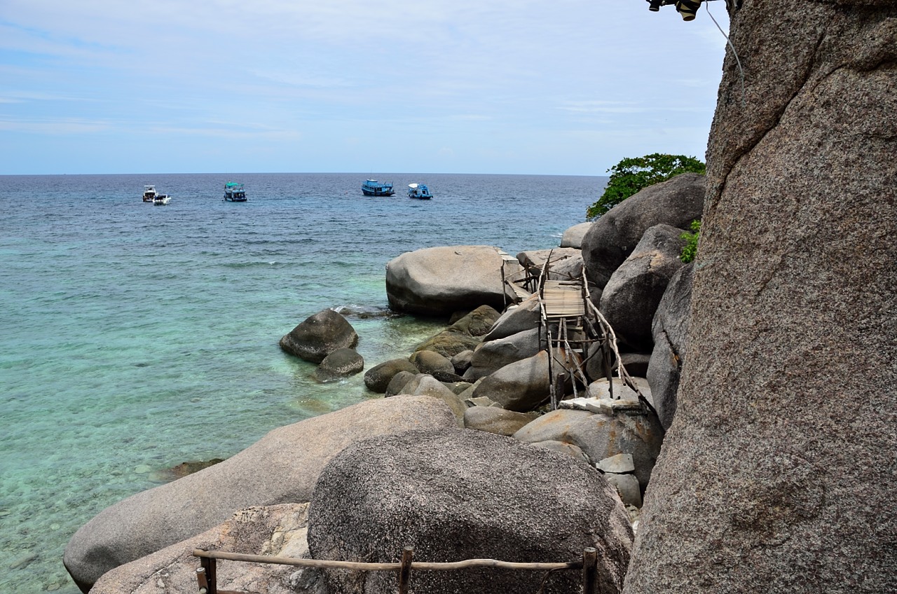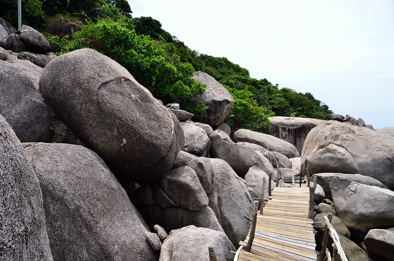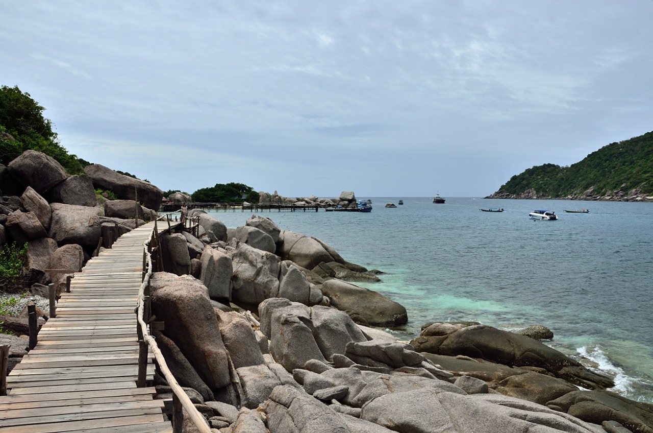 The island is basically 2 large limestone ‘islands’ that rise up a few hundred meters connected in the middle by a sandbar. There are some bungalows on each of the islands so you must be able to rent them and stay overnight if you are so inclined. There is also a restaurant and a dive shop here to service the day trippers from Koh Tao and the people going to the dive site that is located just off the island.