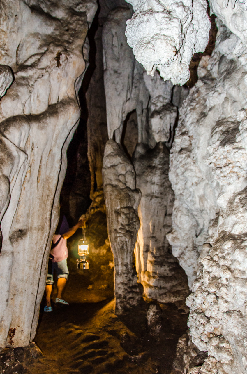 The entrance to the cave is massive and you could easily fit a full sized house inside, and it is here that we board our raft for the journey inside. Our guide has a lantern and it is a good thing because we do not get too far in before we twist through a few corners and it is pitch black inside.  The raft takes us a few hundred meters into the cave and then stops on a gravel beach where we leave the raft and wander into our first sub-cave.