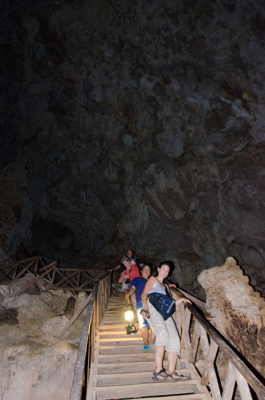 There are at least 3 sub-caverns inside the main cave that have been explored that tourists can go into, and we spend about half an hour going through the first two sub-caves before getting back on our raft to go farther into the main cave to see the last sub-cave.  We are about a kilometer into the cave when we can see the opening at the other end, and we have floated right through the mountain. We explore the last cavern here and then exit the cave for a hike back to the park entrance.