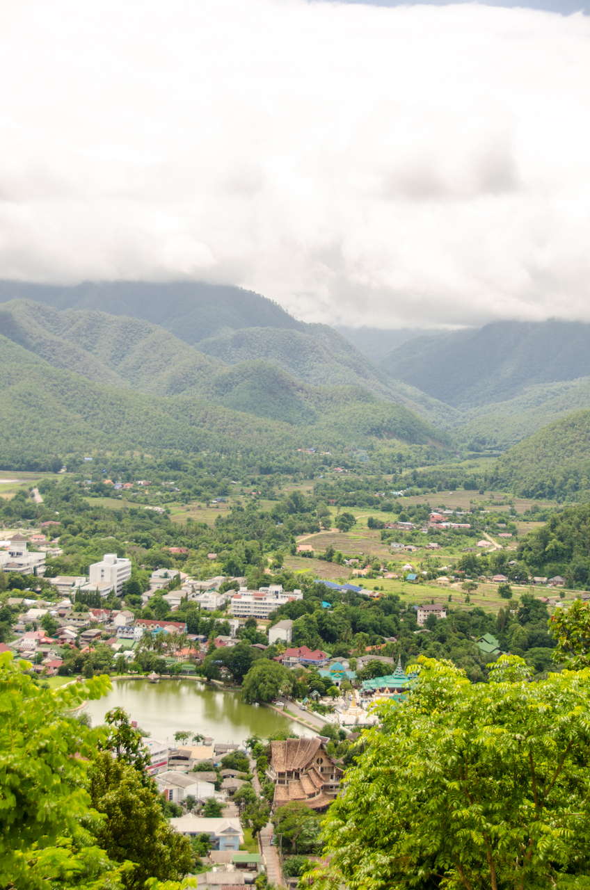 The city of Mae Hong Son is tucked up in the north-western corner of Thailand and aside from the small hill tribe villages everywhere it is the last bit of civilization before going into Burma. On the west edge of the city there is a large hill with a temple on top, and we take a drive up to look out over the city and the valley farther to the west.