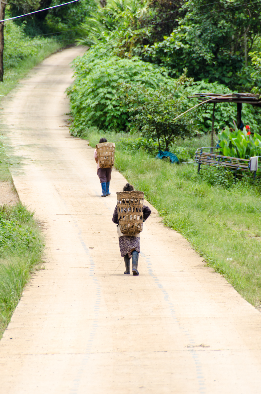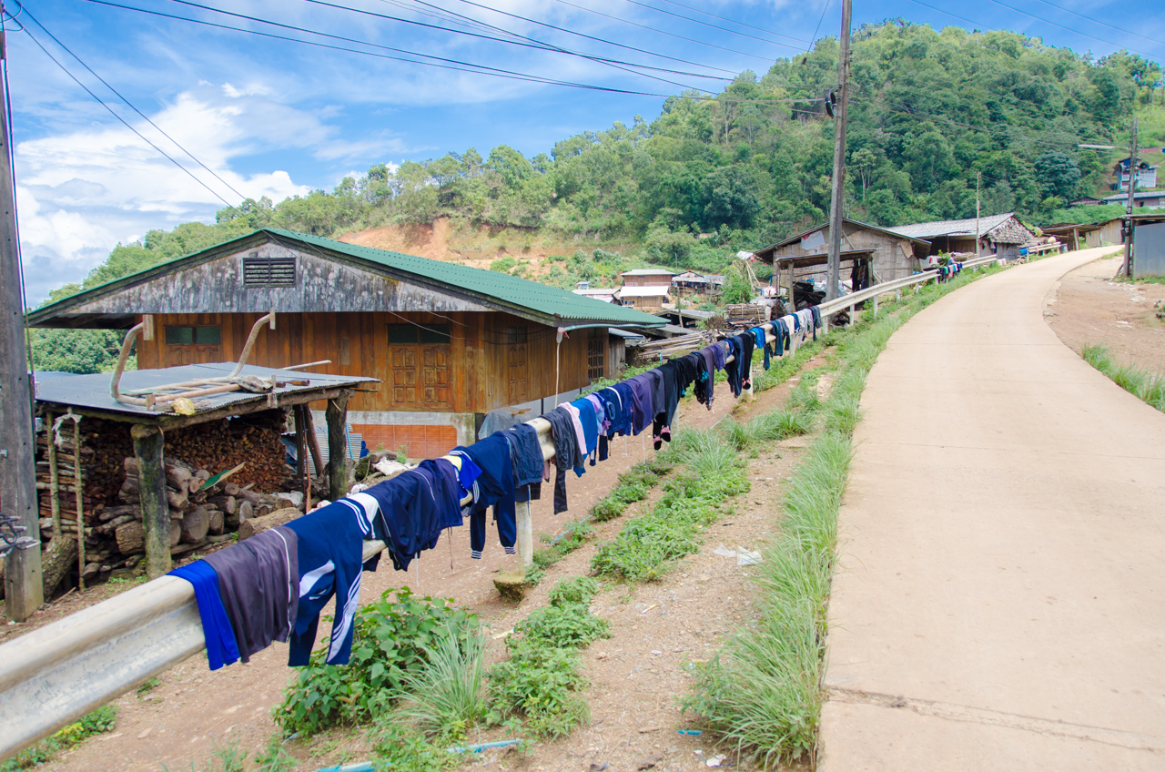 On the way back down we stop at a small village that we passed through on the way up. The people farming the steep hillsides live in this or one of the surrounding villages, but this one seems to be a focal point as there is a school here along with the typical houses of the hill tribe people. This village is the real deal though and not one of the touristy places we have seen before – there are no people putting on a show, or wearing costumes for people to take a picture, just very hard working people going about their normal routine and looking at the foreigners oddly as I am sure not many come past here on a regular basis.