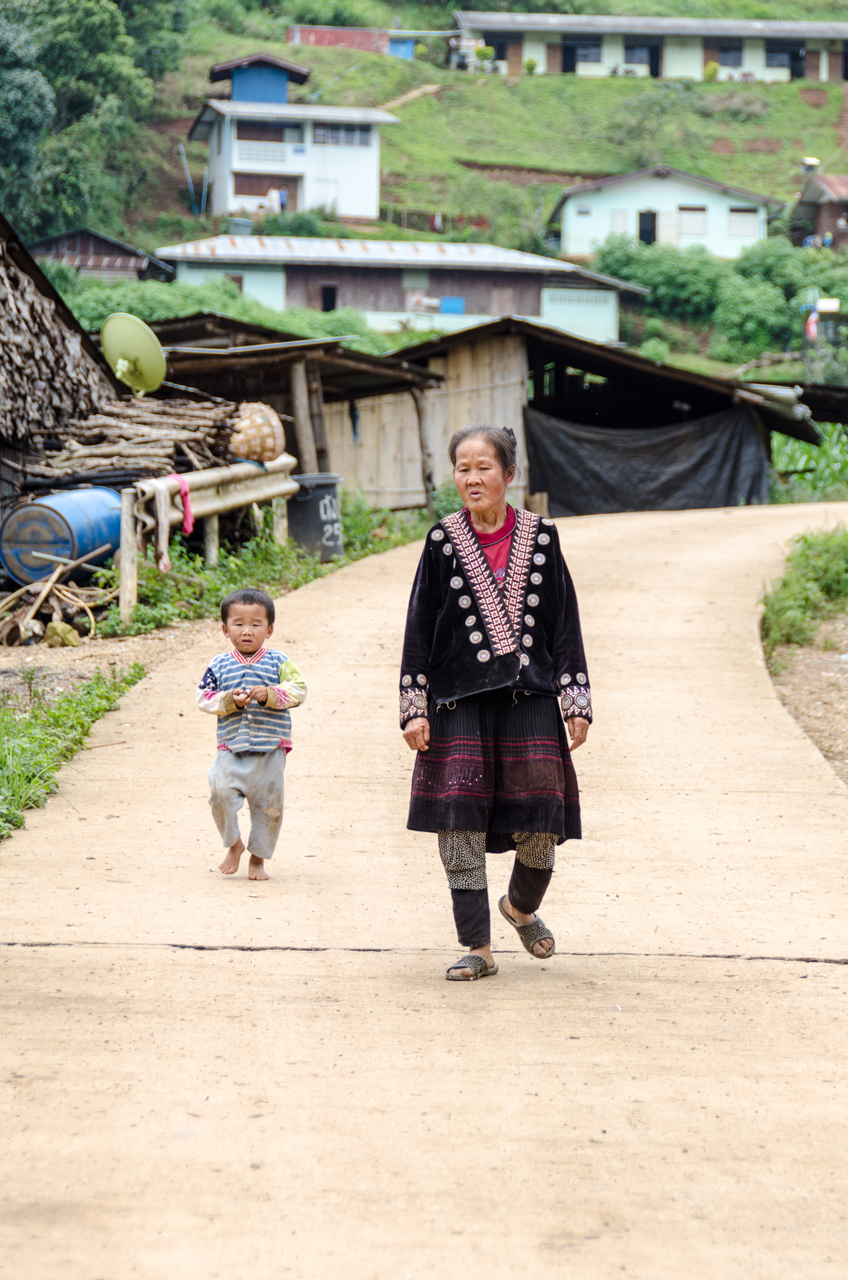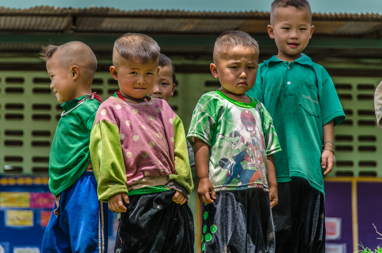 The children running around are a bit leery of the foreigners, and my questionable Thai does not seem to help much as the hill tribe people typically speak a different language than official Thai, but the kids start to warm up to us a bit after we show them some photos, and a bribe of a bag of popcorn we bought in a market seems to go a long way to bridging the language barrier.