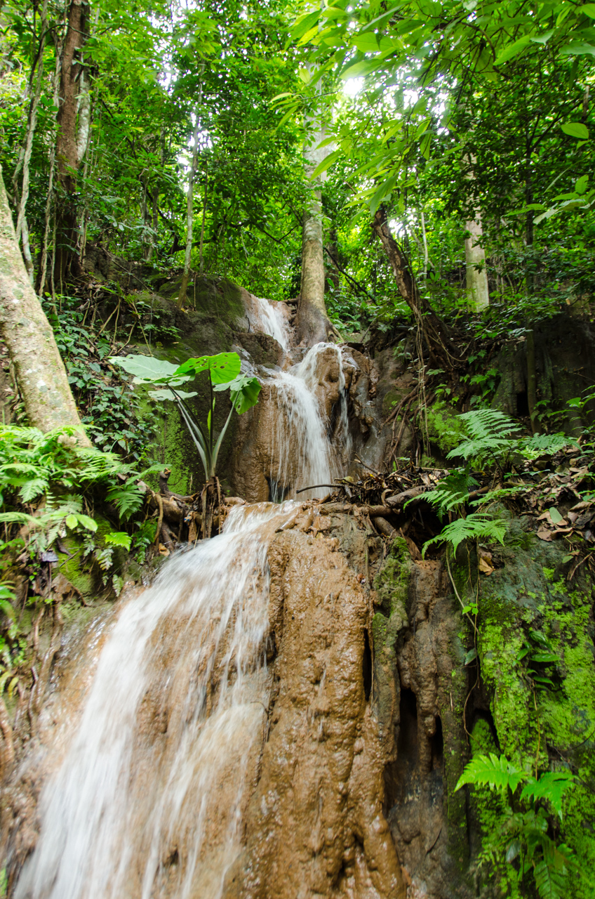 Like the day before we have a bit of time in the schedule for a stop or two along the way, and opportunity knocks about half an hour outside of the city. On the side of the road we see a blue sign written in Thai, but with a picture of a flower and a waterfall – looks good to us, so off the highway we go!