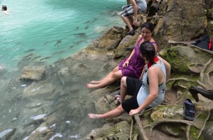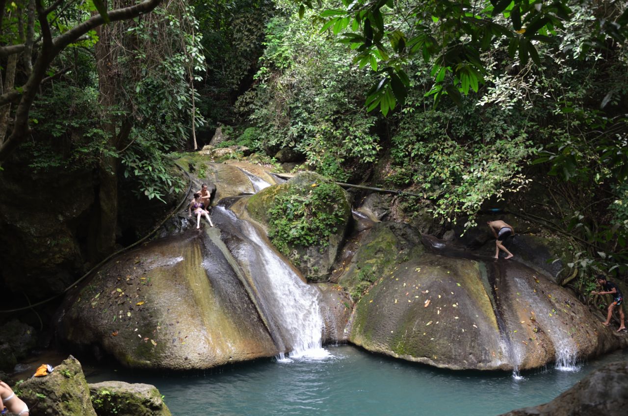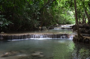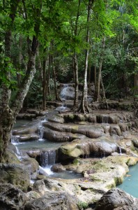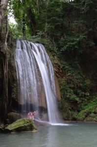 We get to the end of the line and Mr. Sawang is waiting for us for the short trip to Sai Yok to splash about in the waterfall.