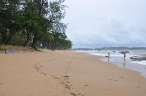 There is an island north of here called Koh Koh Khao that is our goal for the first day, but we only get about half way before we see the dark clouds rolling in on the coast and decide that there is no point on riding towards the rain. We decide to try for a side road up to a waterfall, but the road deteriorates to just a muddy path fairly quickly and decide that we should just accept defeat for the day. We did have a nice day while the sun was out though, and found a few quiet little beach stops along the way out.