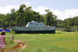 As we often find out here things are not often the same for the locals as they would be for us back home, and it turns out their definition of ferry is not exactly what we might be used to. The ‘ferry’ for us and our motorbikes is actually an old longtail boat that has a bunch of plank decking instead of the seating that a longtail might usually have. The boatman tells us it is 40 baht each (about $1.25US) to cross and then makes some gestures that we should climb aboard. The surf is rolling the boat a bit as we walk on, but the boatman drives our motorbikes about like it is no big deal and then sticks a bit of wood behind the tire so that they don’t roll around too much during the short crossing – no straps or ties or anything and I raise an eyebrow a chuckle a bit, but who am I to question something that they have clearly been doing for a long time.