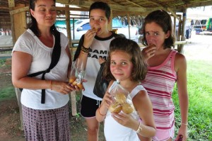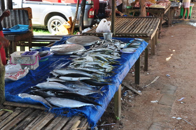 This time we ended up making it all the way to Koh Koh Khao. After about a 45 minute ride up the coast you come to a small town where we are told that we can catch a ferry across a small straight to the island. We are not exactly sure where to catch the ferry and because the town is small and out of the mainstream, most of the sighs are only in Thai, but we figure that the place is not that big we will just follow the shore until we find it. Our first guess seems good from the road and we turn off towards some boats, but it turns out to be a fishing dock, and we try to ask for directions, but our Thai is not that good, and the people’s English was not that good and after some hand waving a nice girl offered to escort us to the right place.