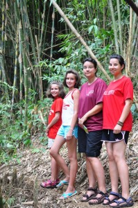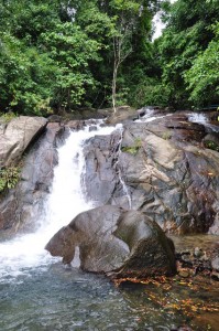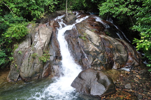 We reached the north tip of the island and there is another ferry dock here where you could catch another longtail boat to another island farther north, but we don’t want to chance not getting back for the last ferry to the mainland so decide to just explore a bit more on the island we are on. The map shows a road that goes down the east side of the island in behind the foothills that are there, and notes a couple of waterfalls to see, and we figure that we have time for that. If the road is on the map, it must be good right? We don’t get too far down the road before it changes from concrete to grave and then to packed dirt with washed out sections, but we are still on the ‘road’ and still looking for the waterfall.